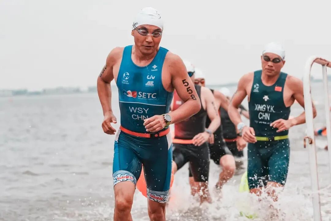 2025年唐山曹妃甸全国铁人三项冠军杯系列赛暨“一带一路”国际铁人三项公开赛,比赛现场。
