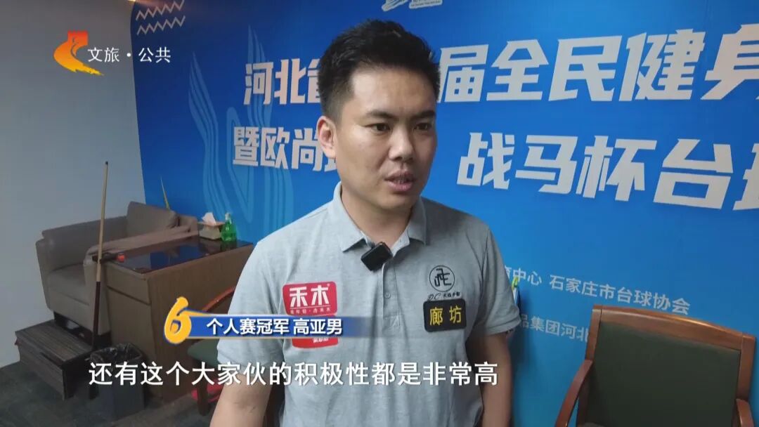 整个赛事的规模,还有这个大家伙儿的积极性都是非常高,我是代表廊坊地区去参加这个比赛,是有运气成分,然后拿了这么一个冠军。一路非常不容易,打了好几个双赛点。水平非常高,整体水平现在都非常高,我觉得河北省台球氛围非常好,而且未来发展的趋势也是非常向上的,有一个非常明显的提高。