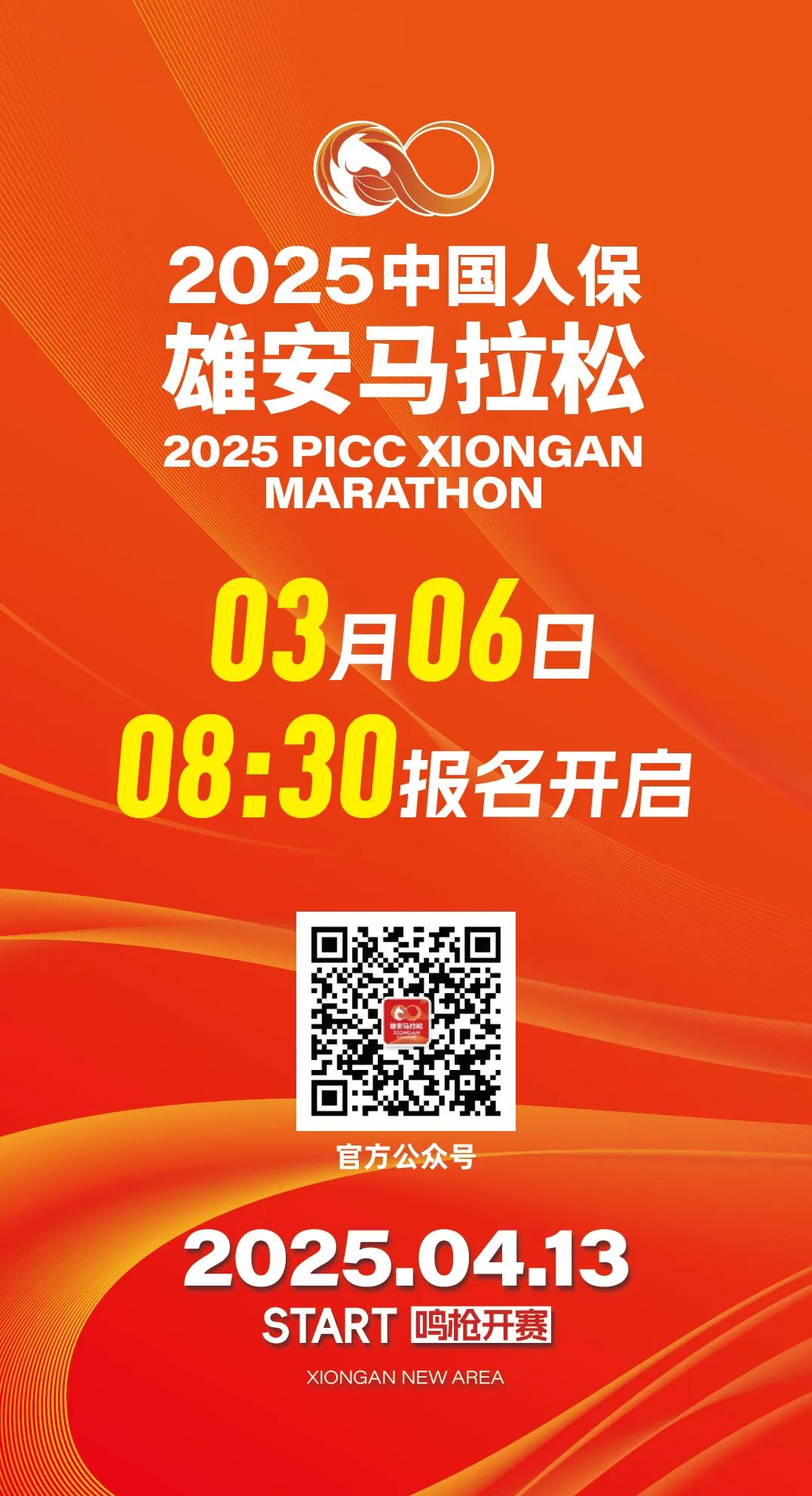 报名预告 | 3月6日8:30,2025中国人保雄安马拉松报名开启!