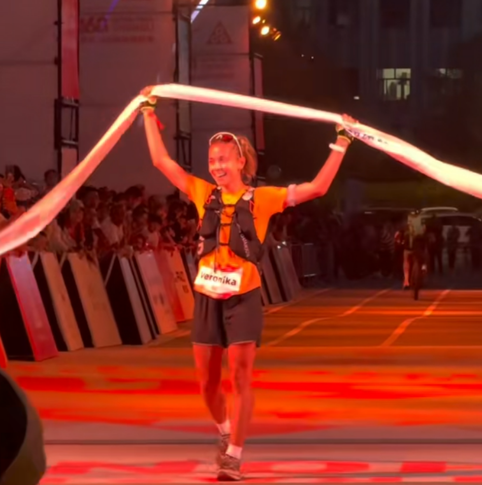 Veronika冲过终点线瞬间