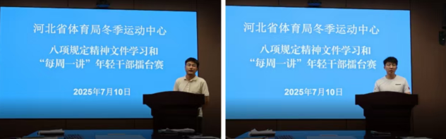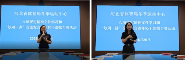 近日,冬运中心组织开展的“每周一讲”暨年轻干部擂台赛活动顺利举行,两名年轻干部结合深入贯彻中央八项规定精神学习教育和本职工作,进行了脱稿演讲,精彩的表现引来阵阵掌声。