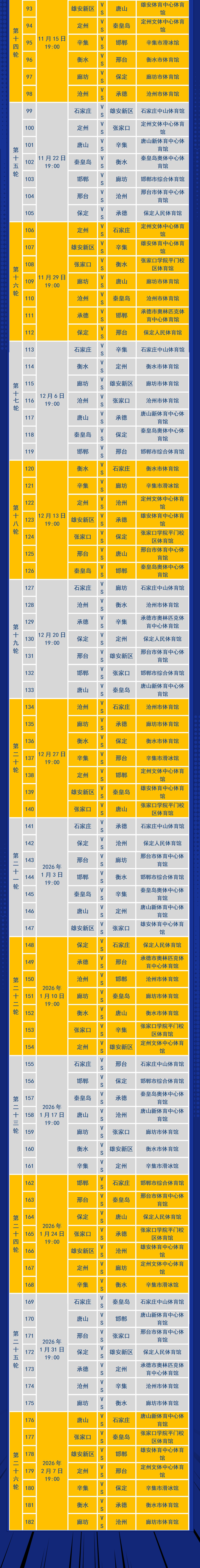 该赛事分三阶段:一是常规赛,今年8月至明年2月进行,14队主客场双循环,26轮182场;二是季后赛,明年2月进行,常规赛前8名参赛,经抽签对阵,主客场淘汰赛后决冠亚,共6轮23场;三是全国擂台邀请赛,明年4月进行,邀“苏超”“村超”赛事冠军等与河北五超冠军交流。