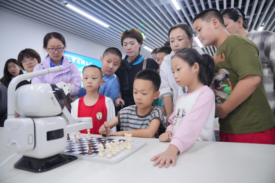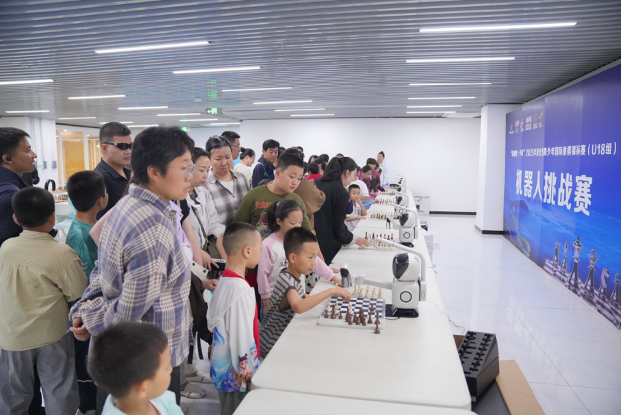 7月19日晚,主办方在比赛之余精心组织了机器人挑战赛活动,受到运动员和家长的热烈欢迎。六台国际象棋机器人一字排开,现场青少年挑战者摩拳擦掌,跃跃欲试,不仅切磋了棋艺,还获得了主办方赠送的礼品。