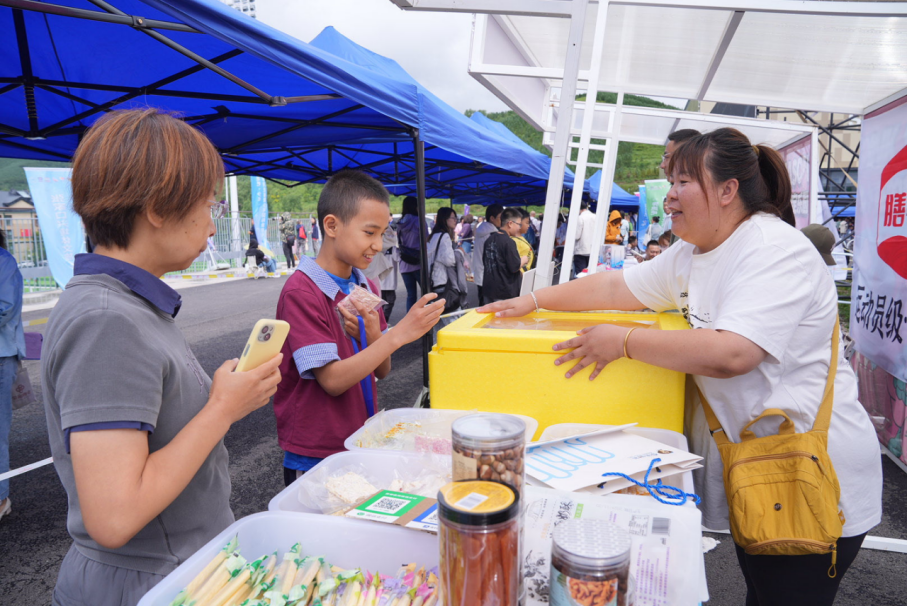 赛场外的特色市集里,餐饮美食、崇礼特产、冬奥文创一应俱全,现场人头攒动,一位餐饮摊主说:“这几天光烤肠就卖了五、六千元,都是参赛家庭买的,真没想到。”