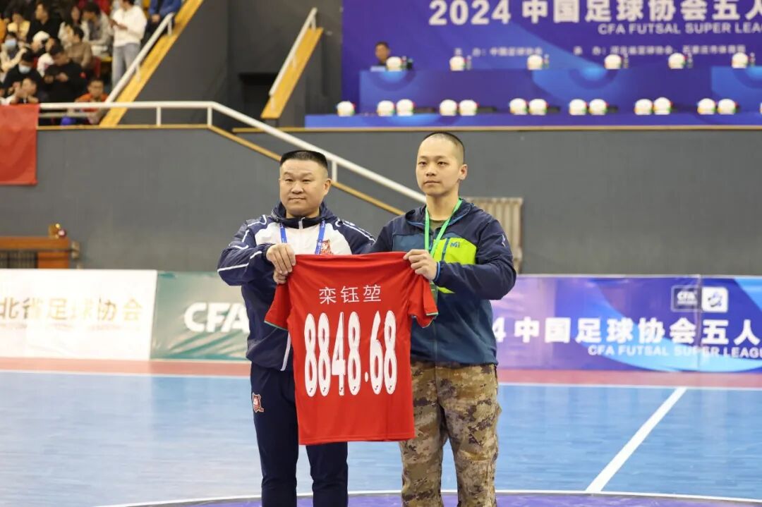 本场比赛,石家庄福美邀请了“感动省城十大人物”获奖者、登顶珠峰好男儿——栾钰堃为比赛开球,石家庄福美足球俱乐部总经理吕秀峰为他送上了号码为珠峰高度8848.68的福美球衣