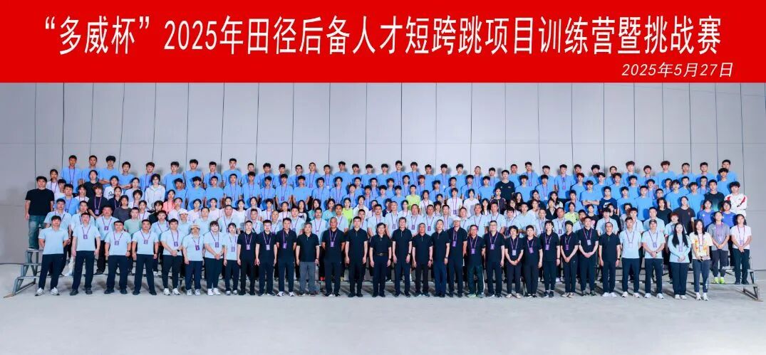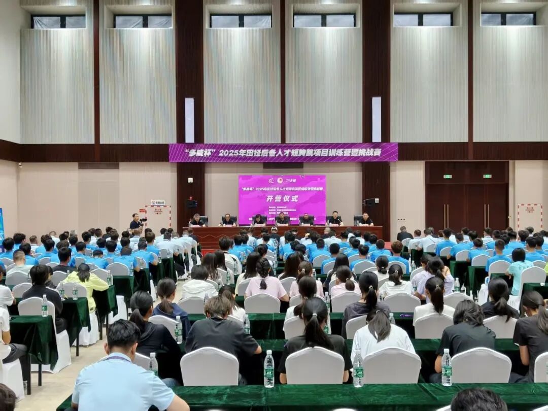 5月27日上午,“多威杯”2025年田径后备人才短跨跳项目训练营暨挑战赛开营仪式在河北奥体中心举行。训练营为期两周,参加单位与人员分别为全国各省田径运动管理中心、2021-2024年度国家田径单项短跨跳项目高水平后备人才基地以及各类体校中短跨跳项目的教练员和运动员,共有来自40支代表队的235人参加。