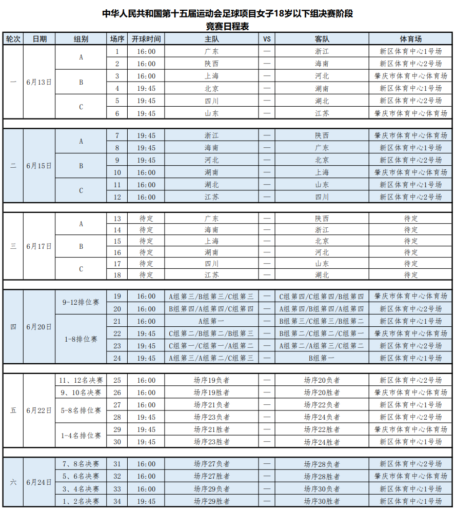 此次决赛阶段共12支队伍,小组赛阶段分为ABC三个组别,河北U18女足分在B组,同组的还有上海队、北京队和湖南队。河北女足首战将于6月13日对阵上海队,此后6月15日、6月17日,将分别迎战北京队和湖南队。