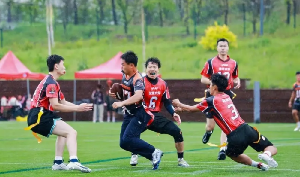 腰旗橄榄球是2028年洛杉矶奥运会的正式比赛项目。腰旗橄榄球源自美式橄榄球,以佩戴“腰旗”代替身体冲撞,强调快速反应与战术协同。区别于传统橄榄球的高门槛,腰旗橄榄球降低了受伤风险,却保留了团队配合、战术博弈与身体张力的精彩看点。