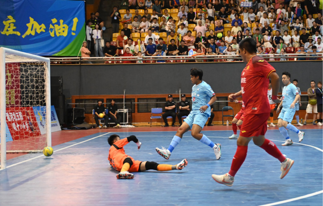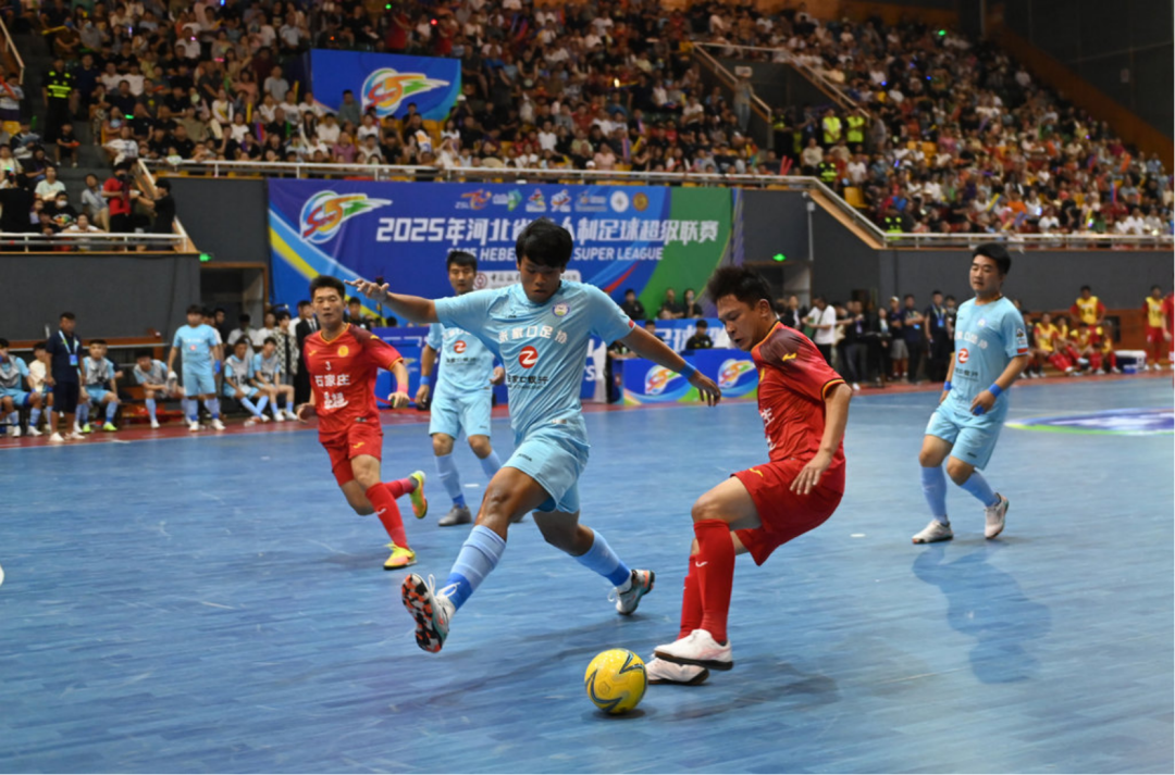石家庄队与张家口队在2025年河北省五人制足球超级联赛揭幕战上。 河北日报记者王伟宏摄