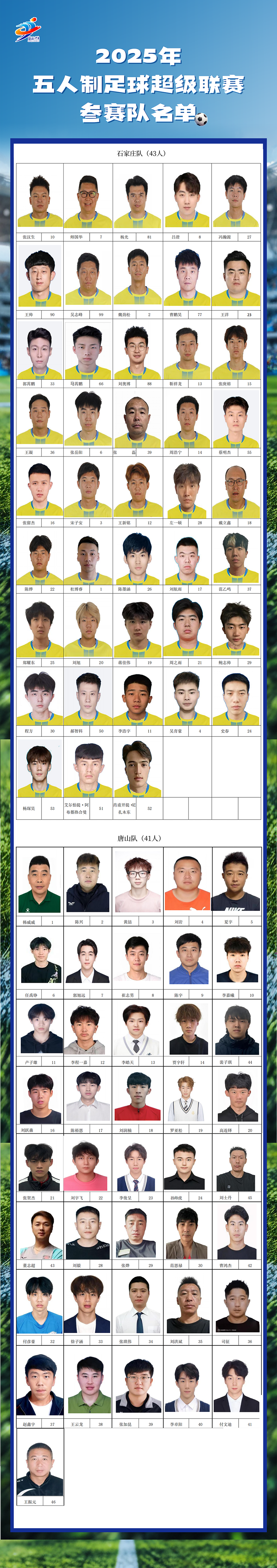 2025年河北省五人制足球超级联赛参赛资格运动员名单公示 来源:体育生活报 时间:2025-08-11 8月2日,根据河北省体育局官方网站发布的《河北省体育局关于对2025年河北省五人制足球超级联赛参赛资格运动员名单的公示》显示,经“河北五超”联赛竞赛部审核,全省共有14支队伍575名运动员予以公示,其中,石家庄队48人、唐山队41人、秦皇岛队27人、邯郸队29人、邢台队50人、保定队50人、张家口队50人、承德队46人、沧州队46人、廊坊队48人、衡水队40人、定州队42人、辛集队31人、雄安队27人。参赛资格运动员名单公示如下: 责任编辑:河北省体育局