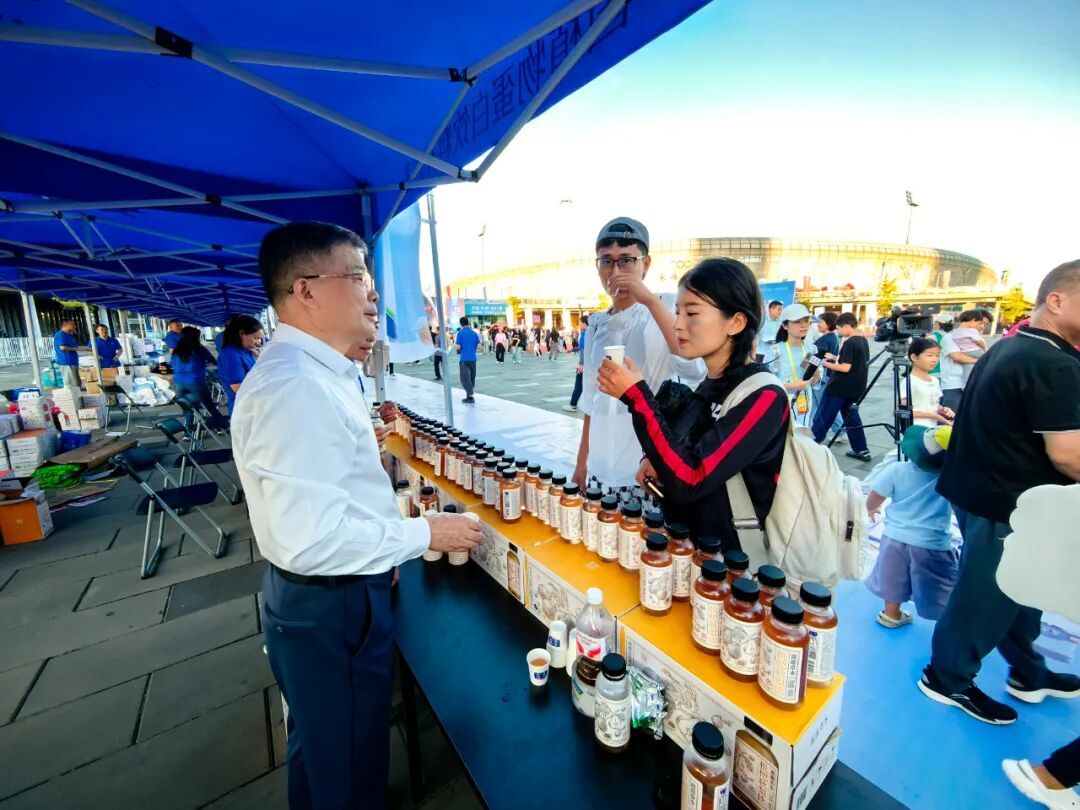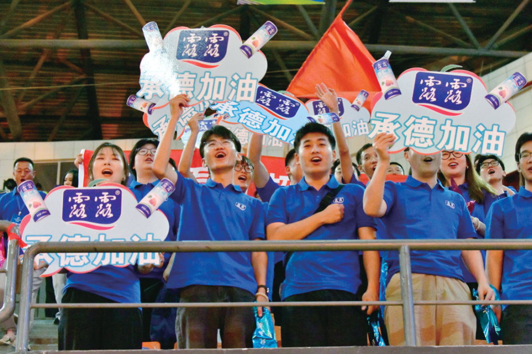 在露露产品展区,还有不少球迷一边品尝着各种新品,一边讨论着今晚的比赛。“我是承德队的铁杆粉丝,每个主场比赛都会来看。”穿着承德队红色队服的王红凯告诉记者,“有本地企业支持我们的球队,感觉特别自豪。”