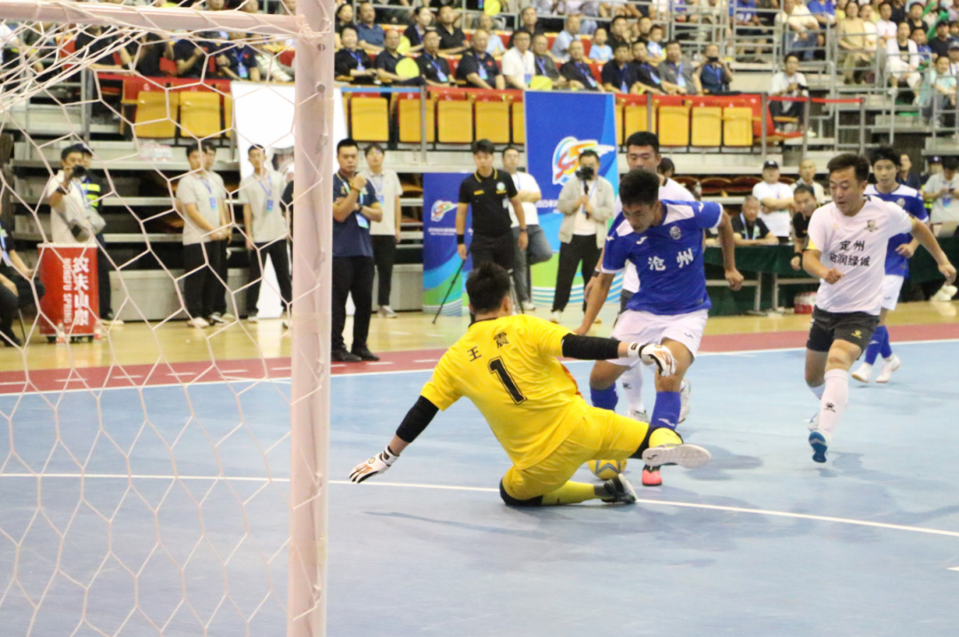 9月13日晚,2025年河北省五人制足球超级联赛(以下简称“河北五超”)第五轮比赛打响,沧州队在主场沧州体育馆迎战来访的定州队。本场比赛,球员们在场上全力拼抢,球迷于看台挥臂呐喊;场外,“第二赛场”人声鼎沸,“体育+消费”融合市集热闹非凡,为每一位热爱者奉献了一个激情的足球之夜。最终,经过激烈比拼,沧州队凭借强大攻势以7比5战胜定州队,延续了主场的强势表现。