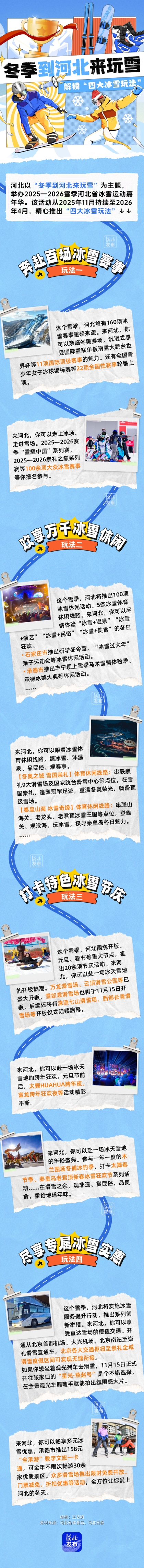 为进一步丰富群众冰雪运动生活,2025年11月至2026年4月,河北省体育局联动各地市,隆重推出“冬季到河北来玩雪”2025-2026雪季河北省冰雪运动嘉年华,并全新解锁冰雪赛事、冰雪休闲、冰雪节庆、冰雪实惠四大冰雪玩法。