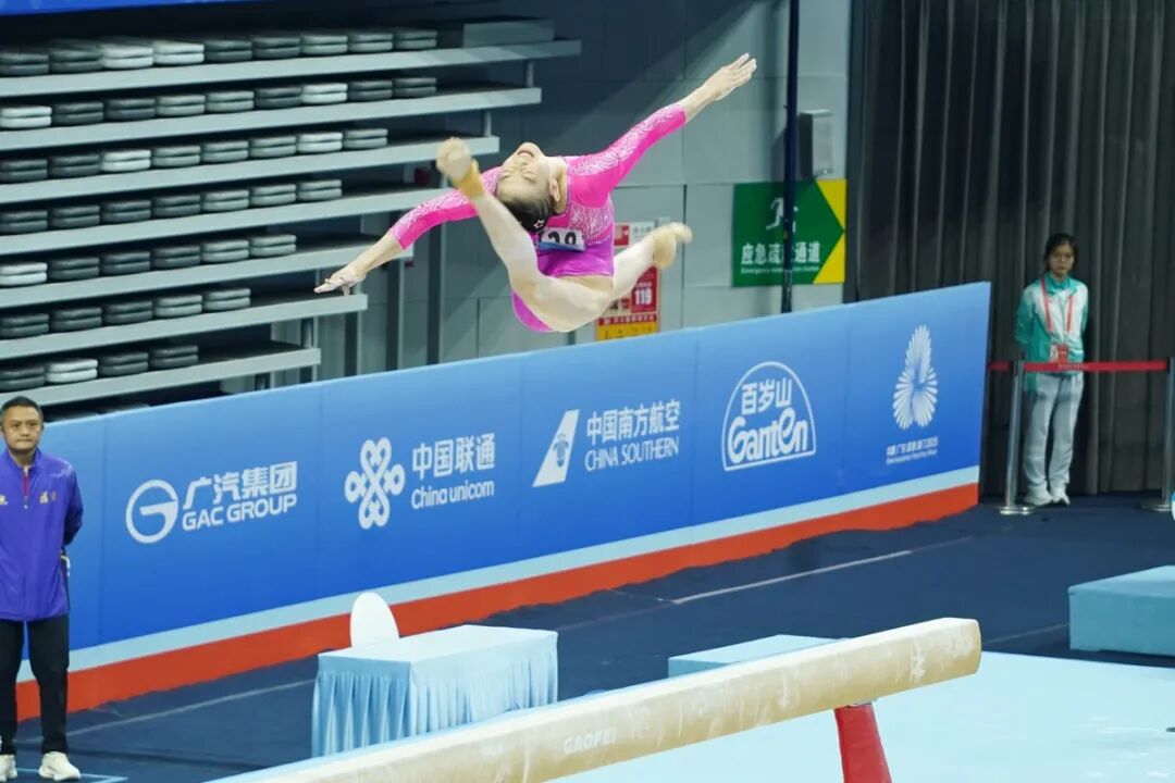 带着“三金王”的气势,她转战成年组赛场,展现出“初生牛犊不怕虎”的拼劲。女团决赛中以0.002分之差与冠军失之交臂后,柯沁沁迅速调整状态,在15日进行的女子个人全能项目中迎头赶上。在跳马和高低杠稍显落后之际,她凭借平衡木的出色表现大幅缩小分差。最后的自由体操比拼,她顶住压力实现大逆转,为广东队赢得成年组项目的首金。