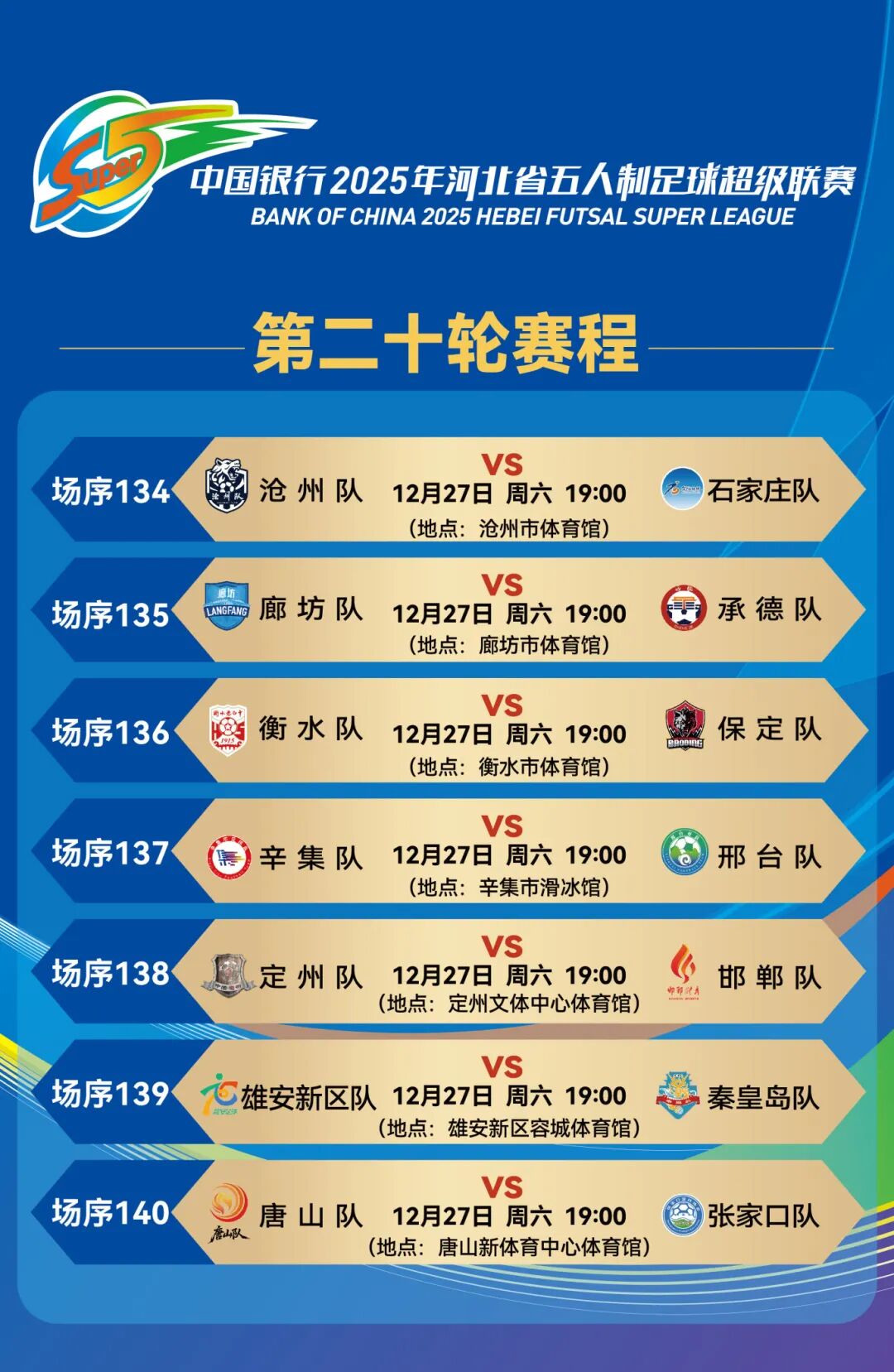 “河北五超”第20轮本周末开赛 看点十足→ 来源:河北体育 时间:2025-12-23 2月27日(周六),“河北五超”将迎来第20轮的较量。经过此前19轮的激烈角逐,联赛已进入关键阶段,争冠形势虽已初显轮廓,但最终格局仍存悬念。在第19轮比赛中,多场比赛出现高比分。保定队表现强势,以一场大胜继续领跑联赛积分榜。沧州、邢台等队也表现出色,展现了五人制足球攻防转换快、进球数多的特点。本周六,让我们聚焦赛场,继续期待各球队为我们带来精彩表现。 责任编辑:河北省体育局