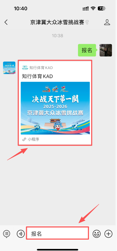 ↑底端对话框发送【报名】获得报名小程序入口