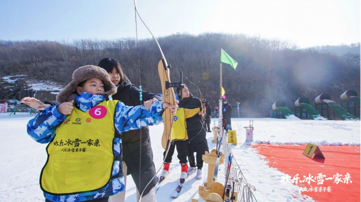 首日比赛中,雪圈接力赛率先引燃全场氛围,家长与孩子默契搭档、携手滑行,在雪道之上接力穿梭,欢声笑语与助威呐喊交织回荡,瞬间点燃赛场的热烈气息。作为本届赛事重磅创新亮点的滑雪射箭项目,更凭借独特赛制成为全场瞩目焦点。选手需完成短程滑雪滑行后,于指定发射点稳住身形、凝神发力,完成箭支精准发射。这项将滑雪的速度动感与射箭的精准把控深度融合的新颖赛事,既锤炼选手个人运动技巧,又考究家庭间的配合策略与临场默契,凭借趣味性与挑战性兼具的特质,成为当日最具人气的竞赛项目。