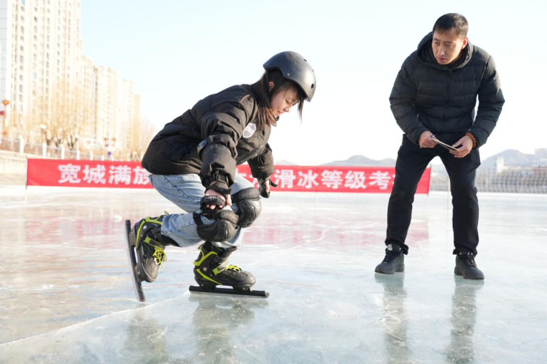 来自东园林小学、山庄小学、民族小学等学校内的师生们来到避暑山庄冰场,在专业考评员的指导下,练习滑冰技巧,获得河北省大众滑冰等级标准证书。