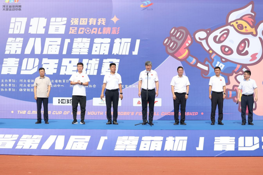 7月28日,河北省第八届“冀萌杯”青少年足球赛在雄安新区足球半岛开幕。河北省体育局党组成员、副局长刘杰,中国足球名宿肇俊哲等领导和嘉宾出席开幕式并为比赛开球。