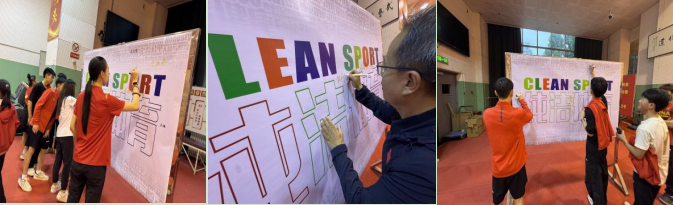活动现场设置了反兴奋剂展架、答题区、签名合影区、并设有套圈互动游戏等。活动开始前,大家在醒目的反兴奋剂背景板前签名,展示了坚决抵制兴奋剂的态度和积极向上的精神风貌。