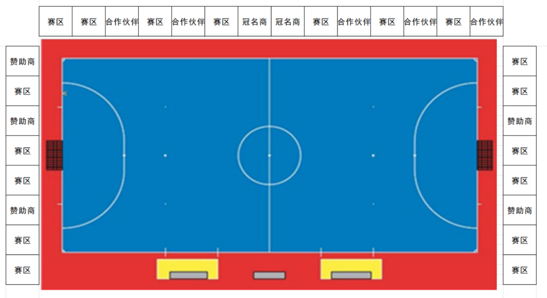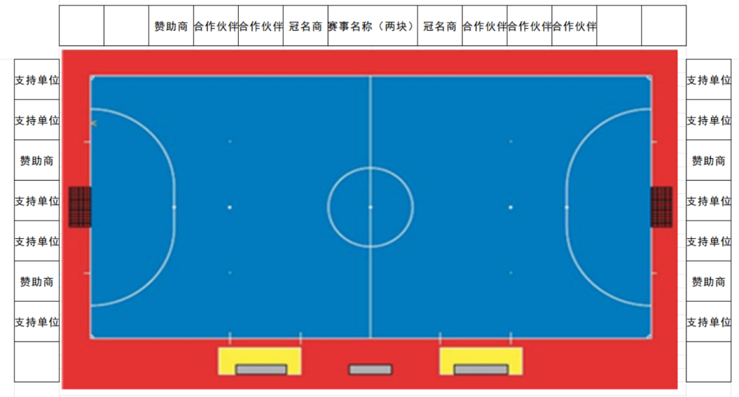 1.赛事现场权益,包括主背景板LOGO;每场比赛场地围挡1个A字板广告位(附件1、2);在赛场周边氛围营造区(例如:运动员通道、观众通道、场馆周边等)加注官方赞助商单位名称或者品牌标识;在场馆外给至少1个广告展位(以各主场策划方案为准,由企业自行布置展位)。